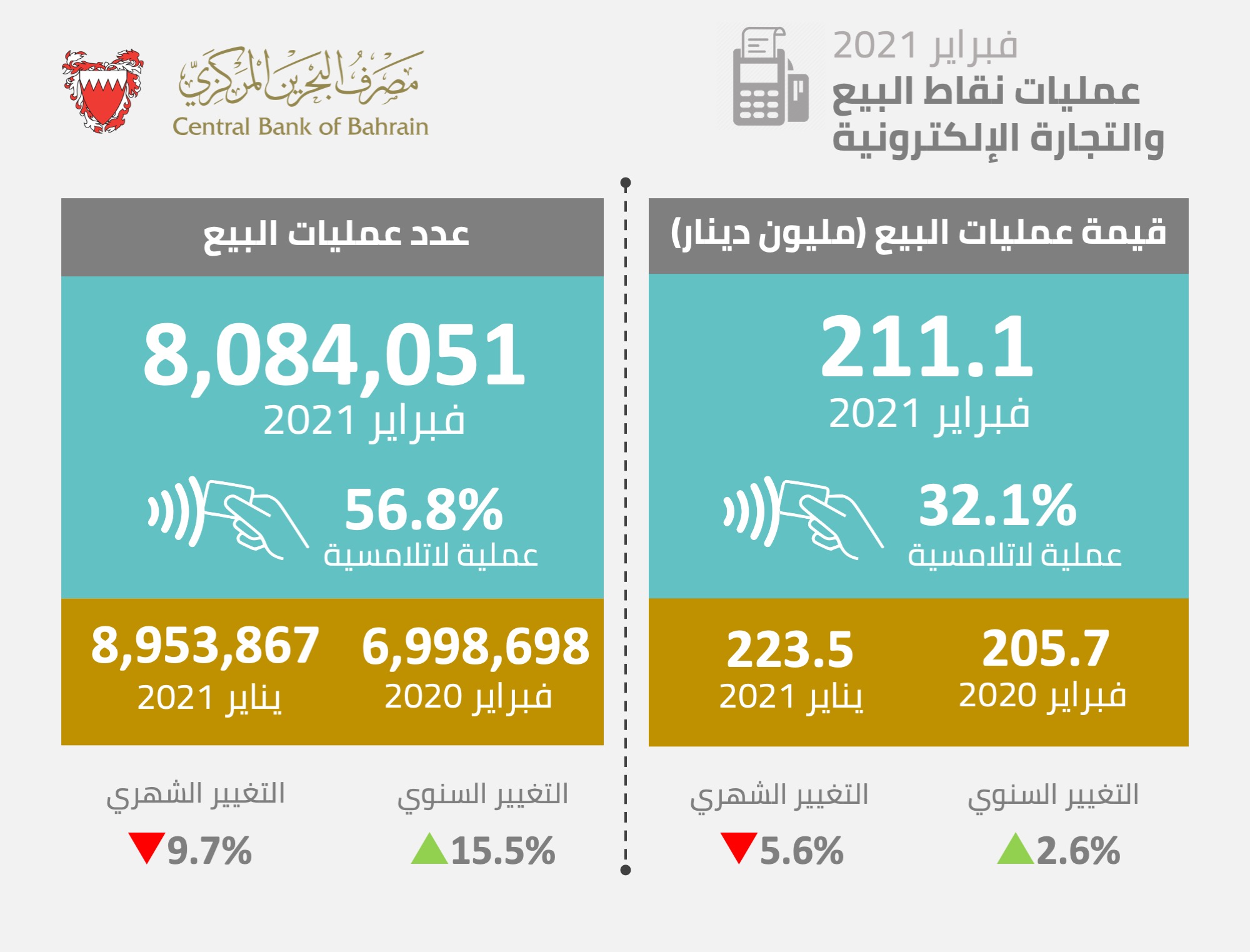 انفوجرافيك لاحصاءات عمليات نقاط البيع وانظمة المدفوعات لشهر فبراير 2021