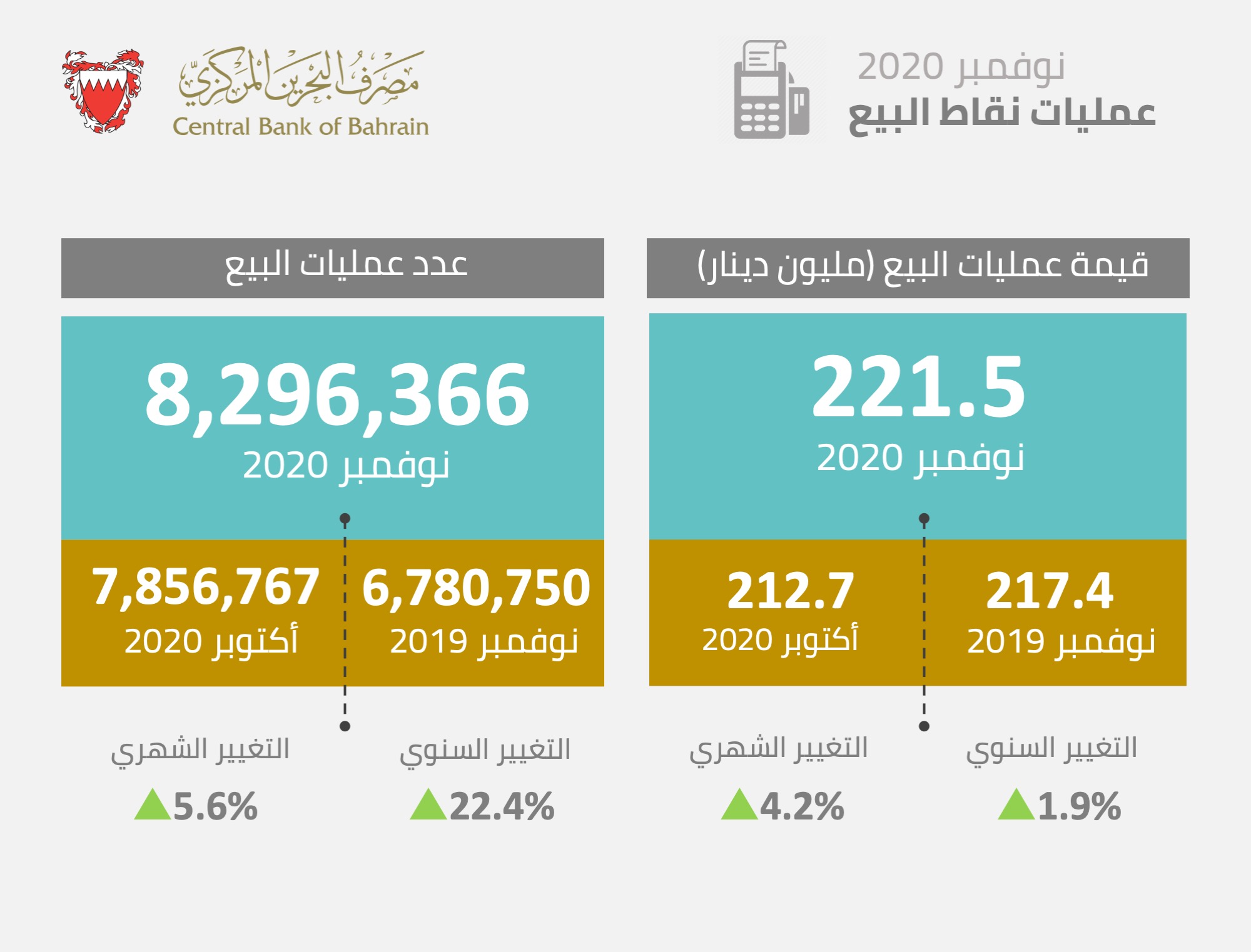 احصاءات عمليات نقاط البيع وانظمة المدفوعات لشهر نوفمبر 2020