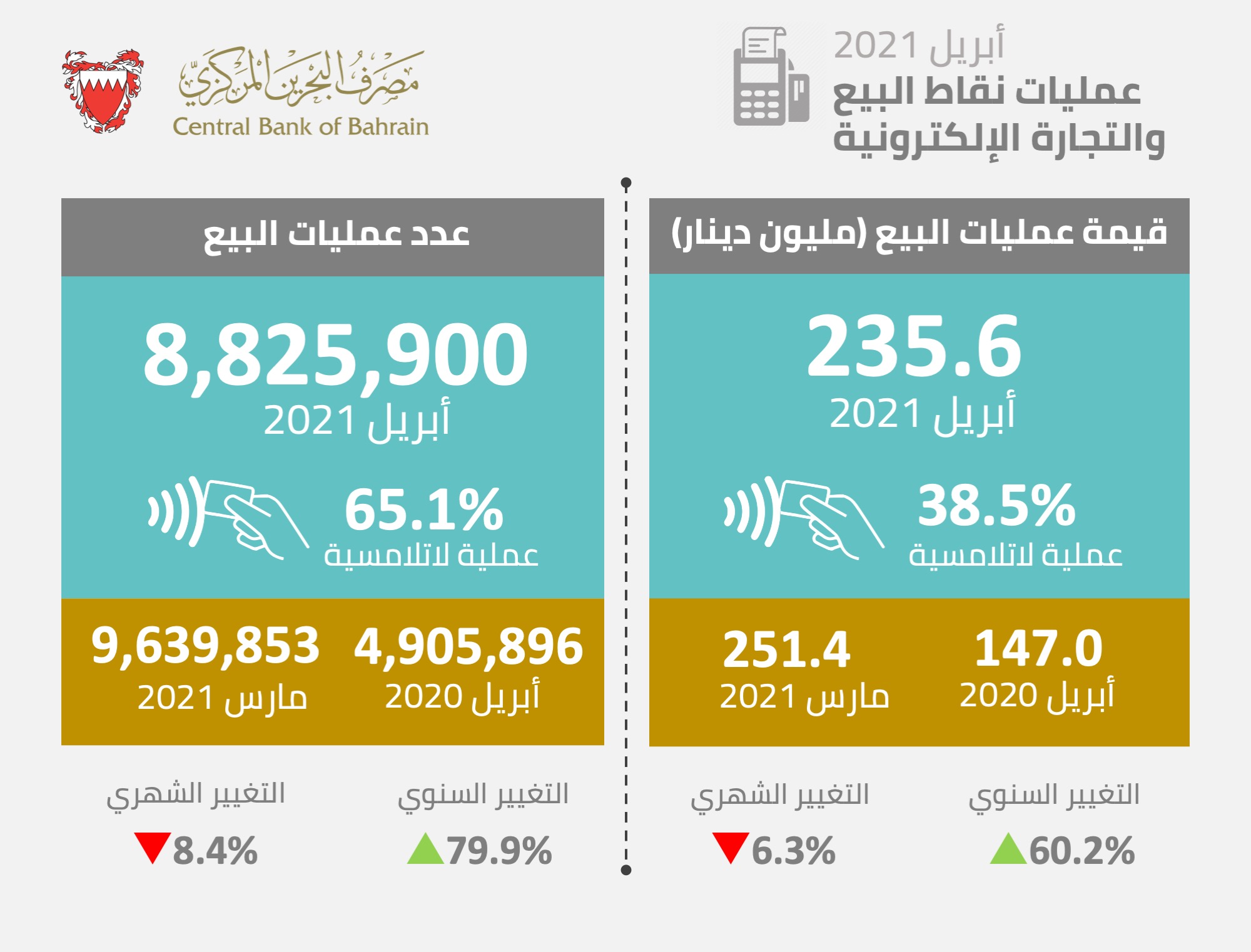 انفوجرافيك لاحصاءات عمليات نقاط البيع وانظمة المدفوعات لشهر أبريل 2021
